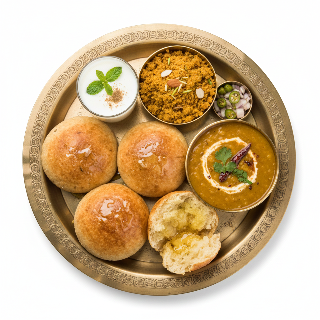 A Rajasthani favourite featuring hearty bati served with rich, buttery dal for a rustic and soul-warming experience.